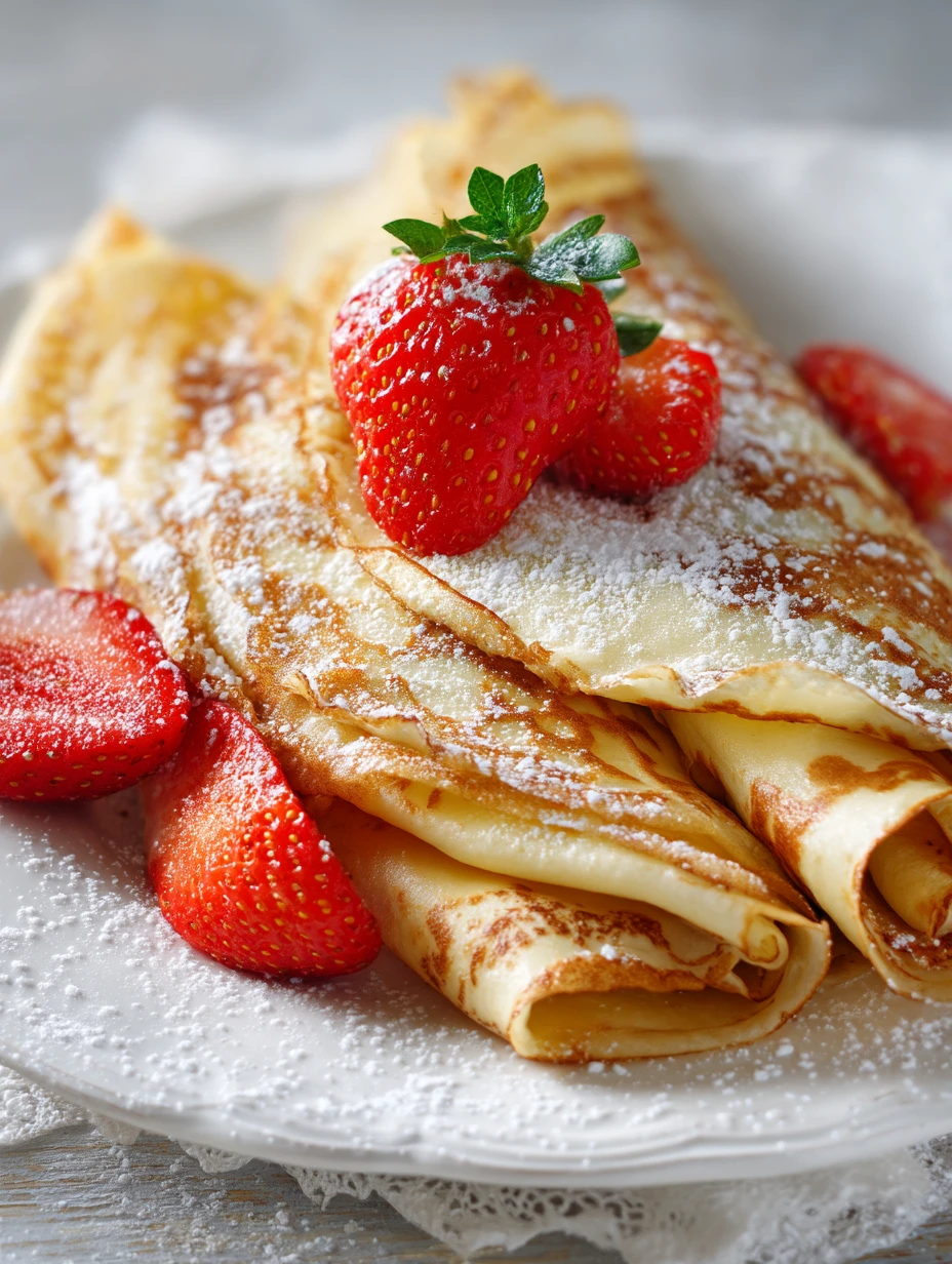 Light, buttery, and paper-thin, these crepes are everything you want in a classic French breakfast or dessert treat. Whether you fill them with strawberries and cream, drizzle them with chocolate, or enjoy them with just a sprinkle of sugar and lemon juice, this recipe is your golden ticket to flawless crepes every time.