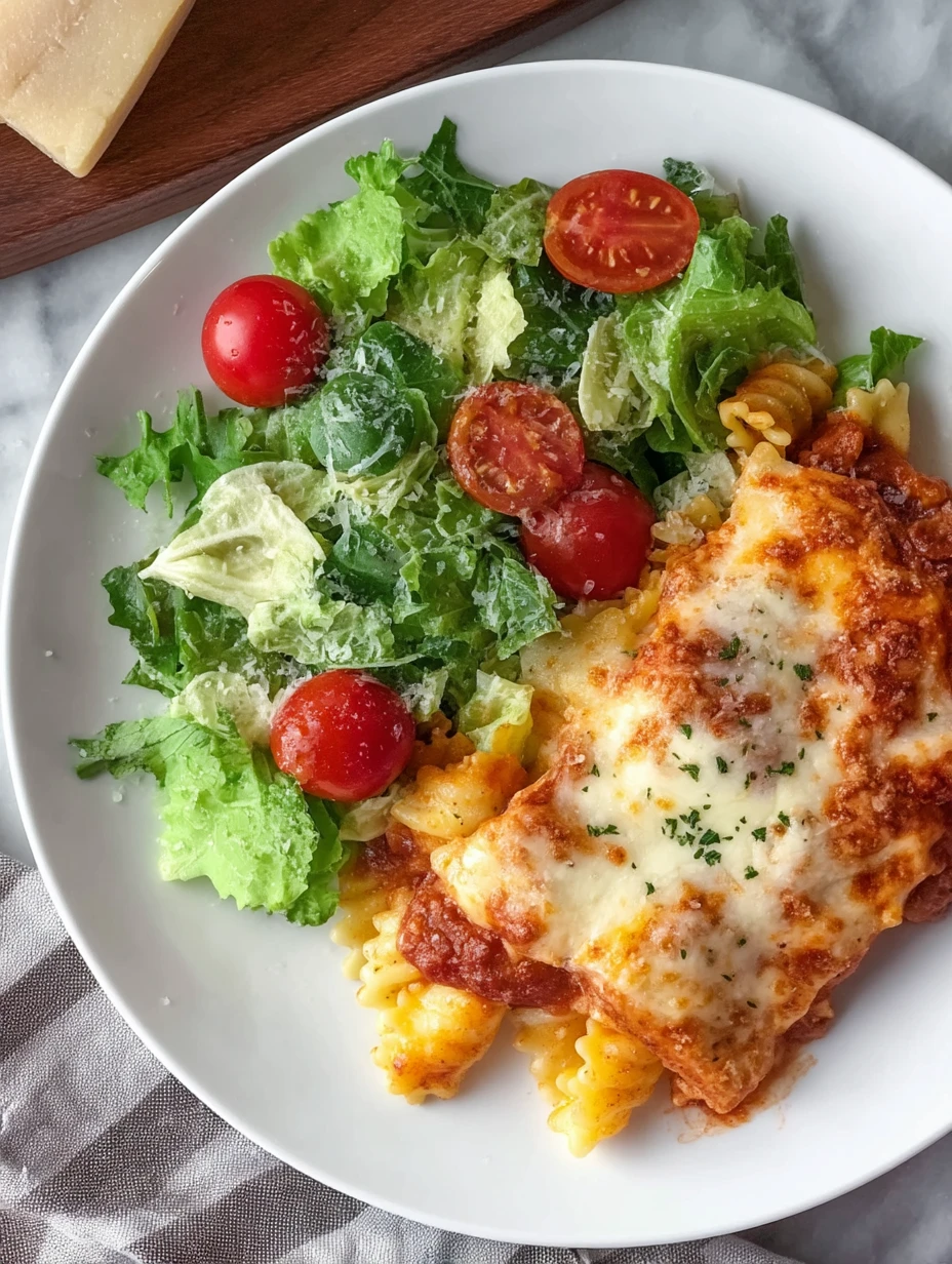 I like to serve this straight from the oven in big, cozy squares with a crisp green salad on the side—something with a zippy dressing to balance all that cheesy goodness. A buttery garlic bread or warm dinner rolls make it feel like a restaurant-style pasta night, even though it all came out of one pan.