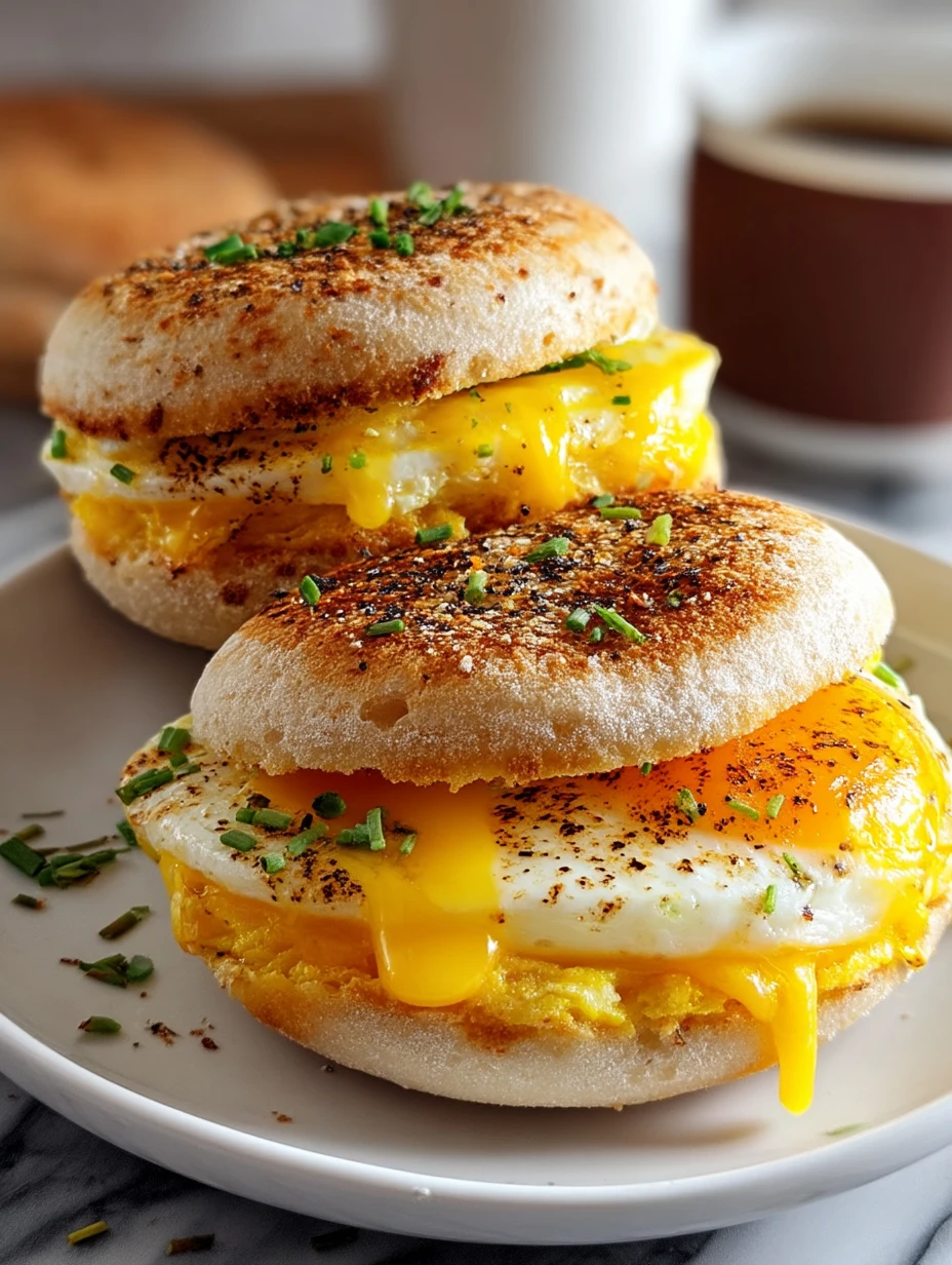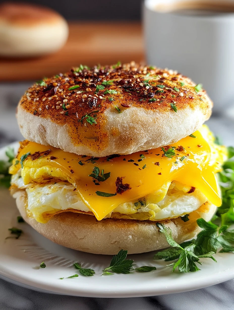Imagine biting into a toasted muffin stacked high with fluffy scrambled eggs and golden cheddar melting over the sides, all dusted with a savory everything seasoning. It’s breakfast comfort at its finest, and you can whip it up in minutes.