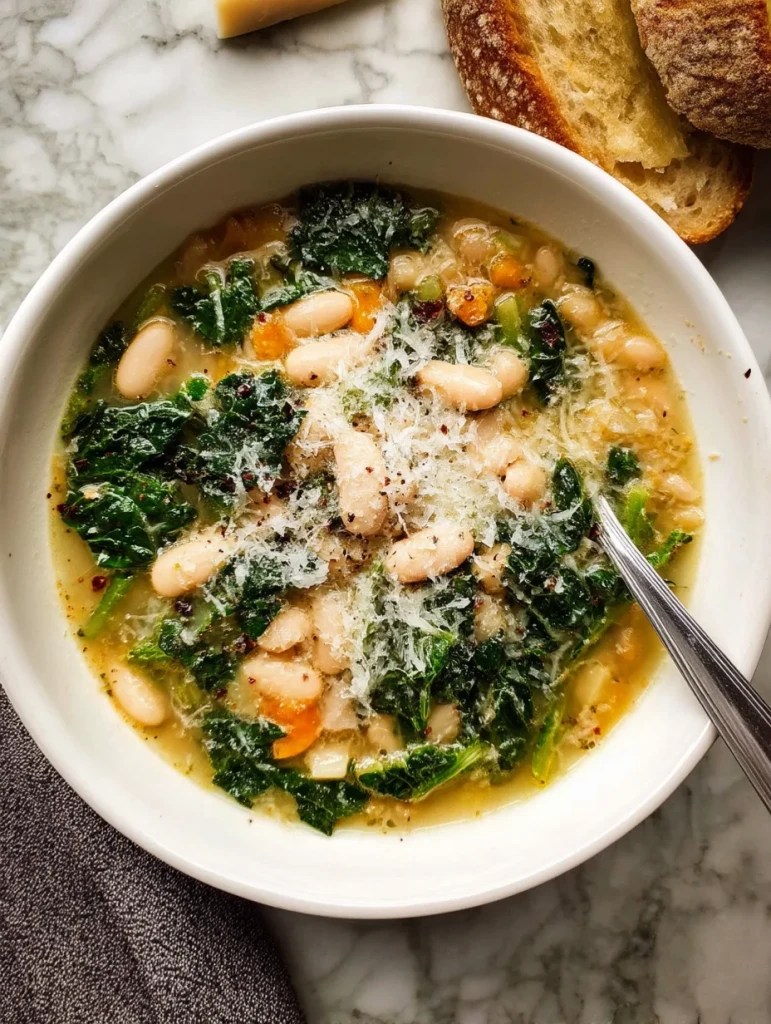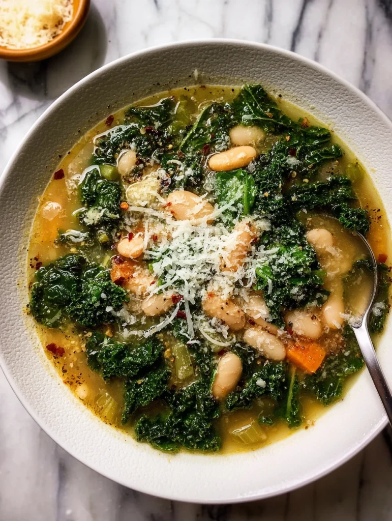 White Bean & Greens Soup with Kale, Spinach, and Parmesan