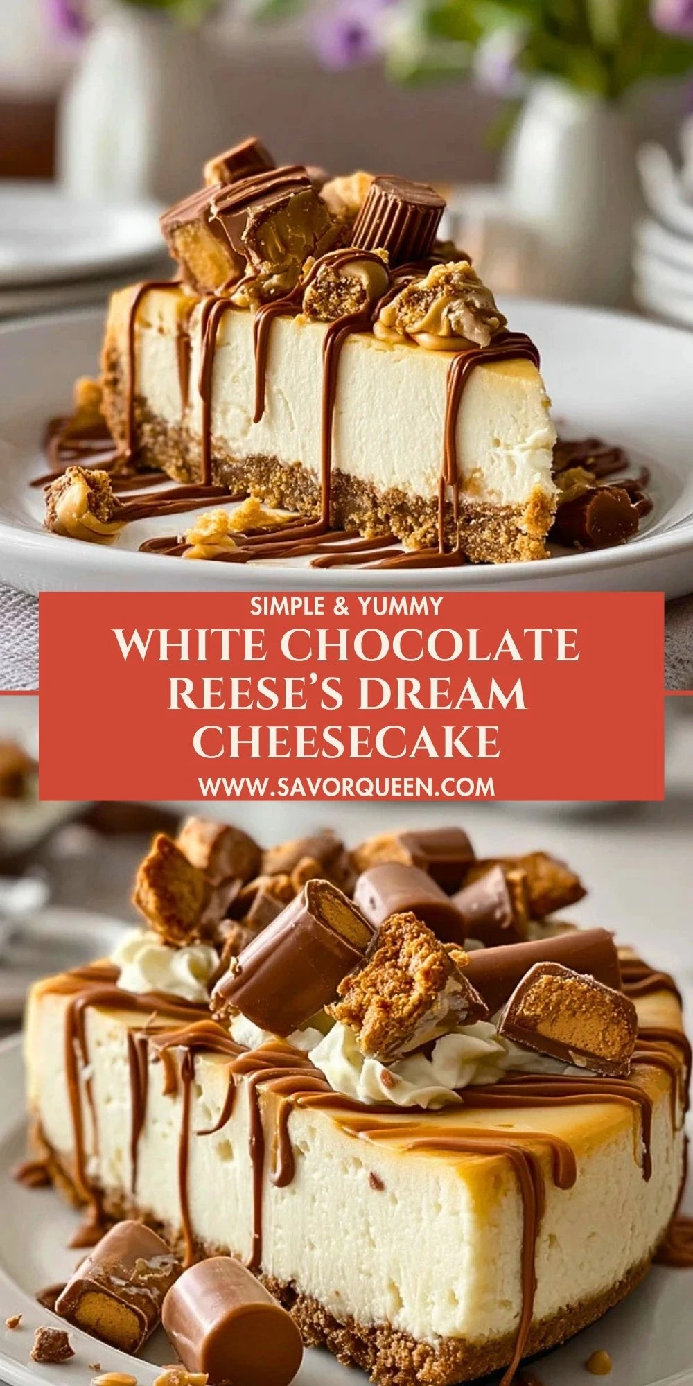 Go ahead and save this White Chocolate Reese’s Dream Cheesecake to your favorite Pinterest board so it’s waiting for you whenever a serious peanut butter‑and‑chocolate craving hits.