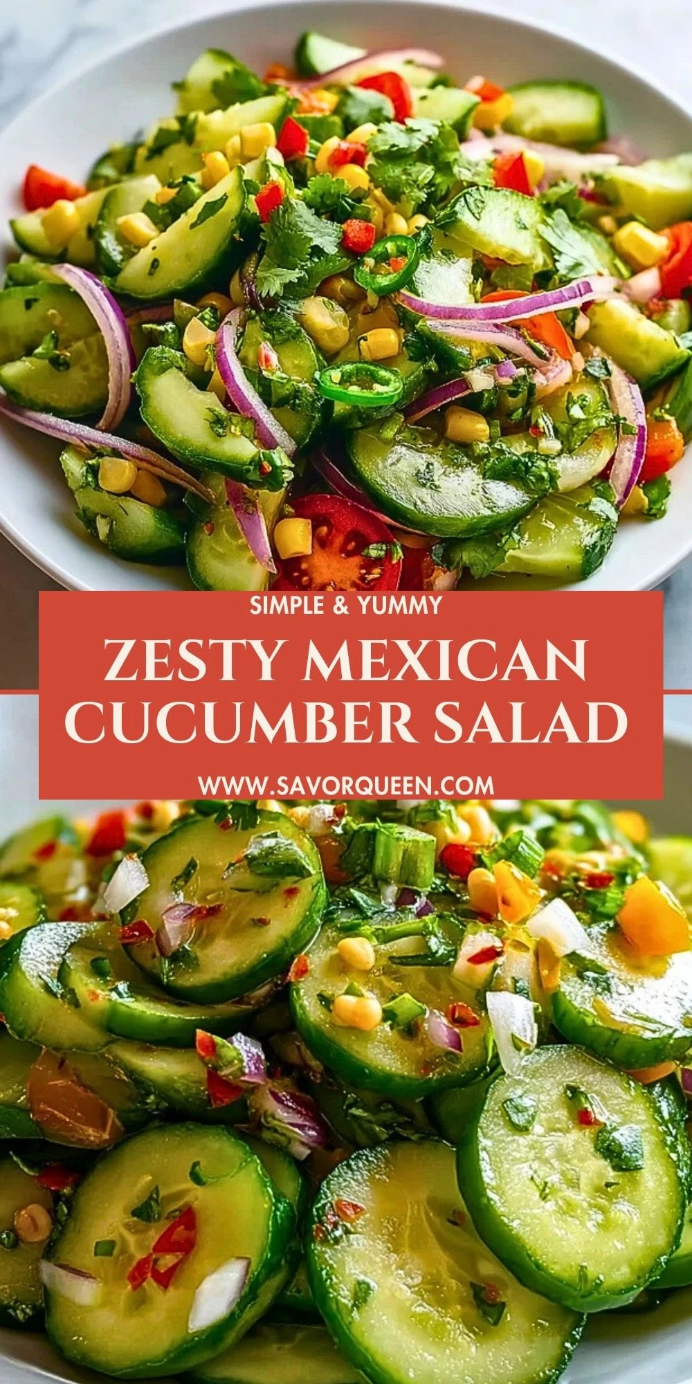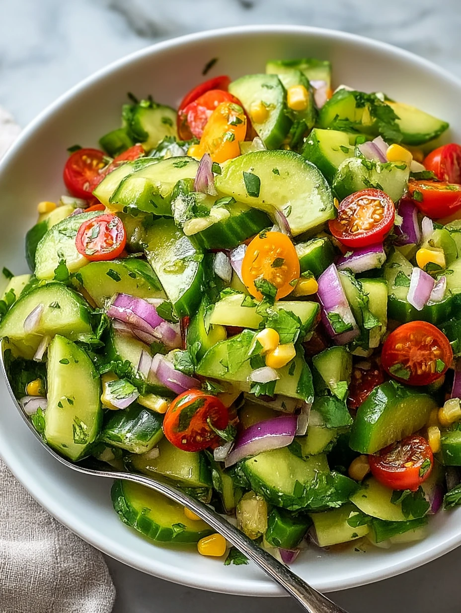 Get ready to refresh your plate with this Zesty Mexican Cucumber Salad—a crunchy, colorful side dish that’s perfect for any occasion. Whether you’re looking for a healthy snack, a quick summer lunch, or something vibrant for your next BBQ, this easy recipe bursts with bright flavors. Juicy cucumbers, sweet corn, zesty lime, and a kick of jalapeño come together in minutes for a dish that’s as beautiful as it is bold. Ideal for those seeking food ideas that are fresh, healthy, and downright irresistible, this salad delivers big flavor in a small amount of time. Think quick lunch, easy dinner, or vibrant party food—this one’s got it all.